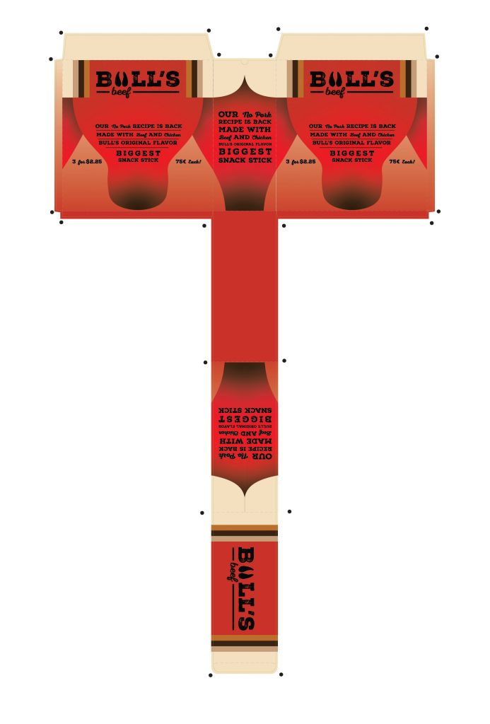 The second design takes the original brand, Bull’s Beef, and gives it a completely new look. I wanted to still maintain and portray the feeling of intensity that prepares the consumer for strong beef jerky flavor, but give it a more refined and minimalistic look. Additionally, the color choices further add to the overall brand feel, giving it a southwest ranch feel.